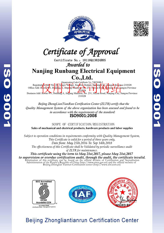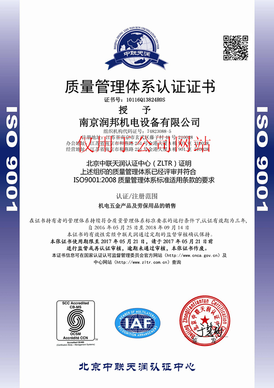 2016年5月25日,我公司再次順利通過(guò)ISO9001質(zhì)量管理體系認(rèn)證,以下是認(rèn)證證書: